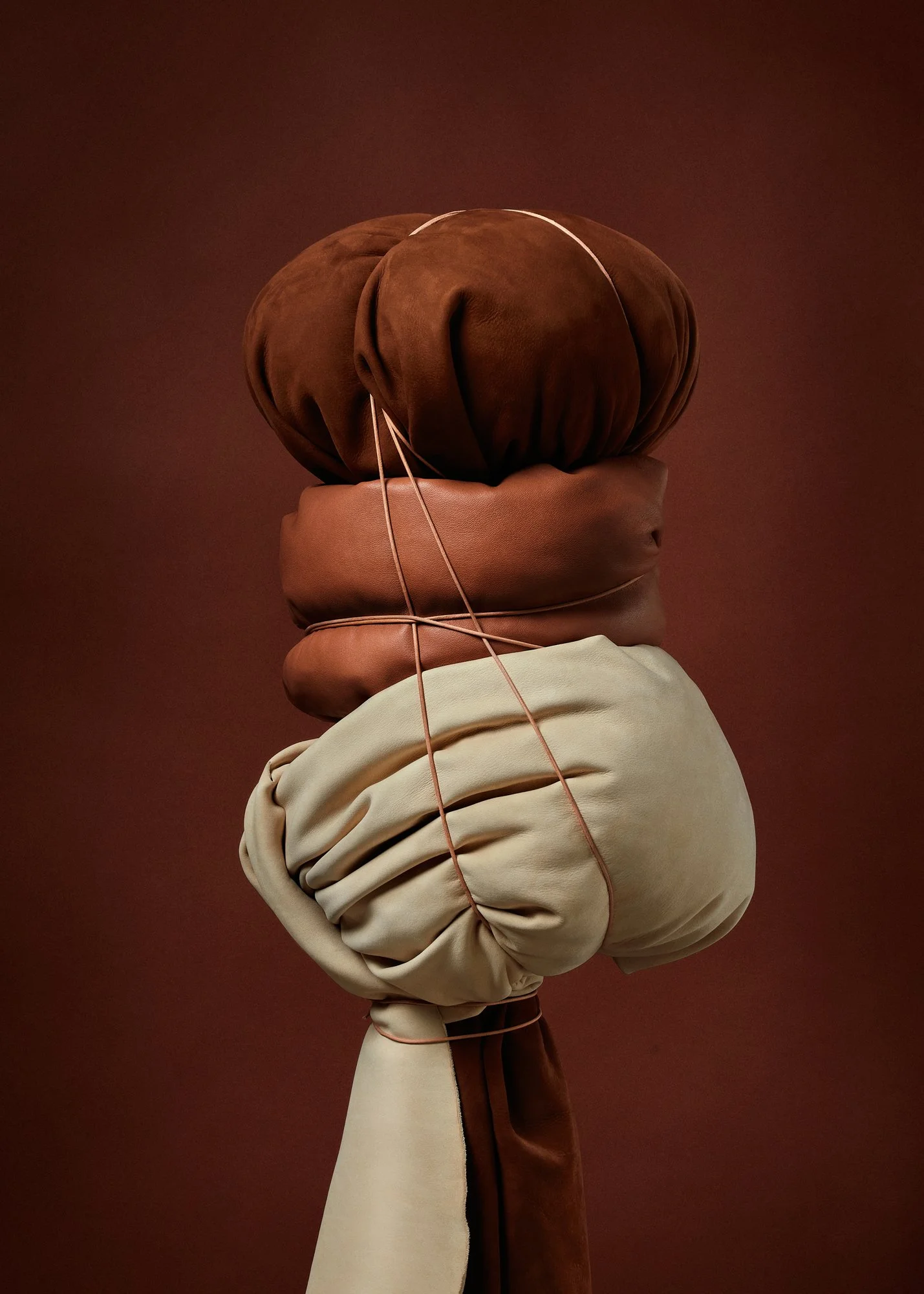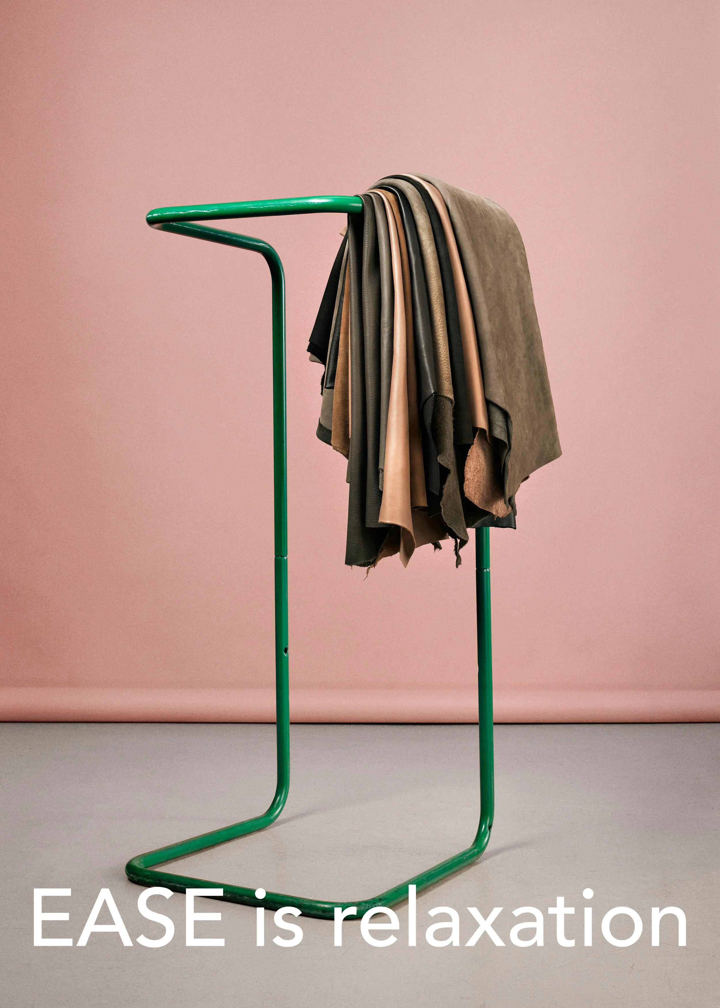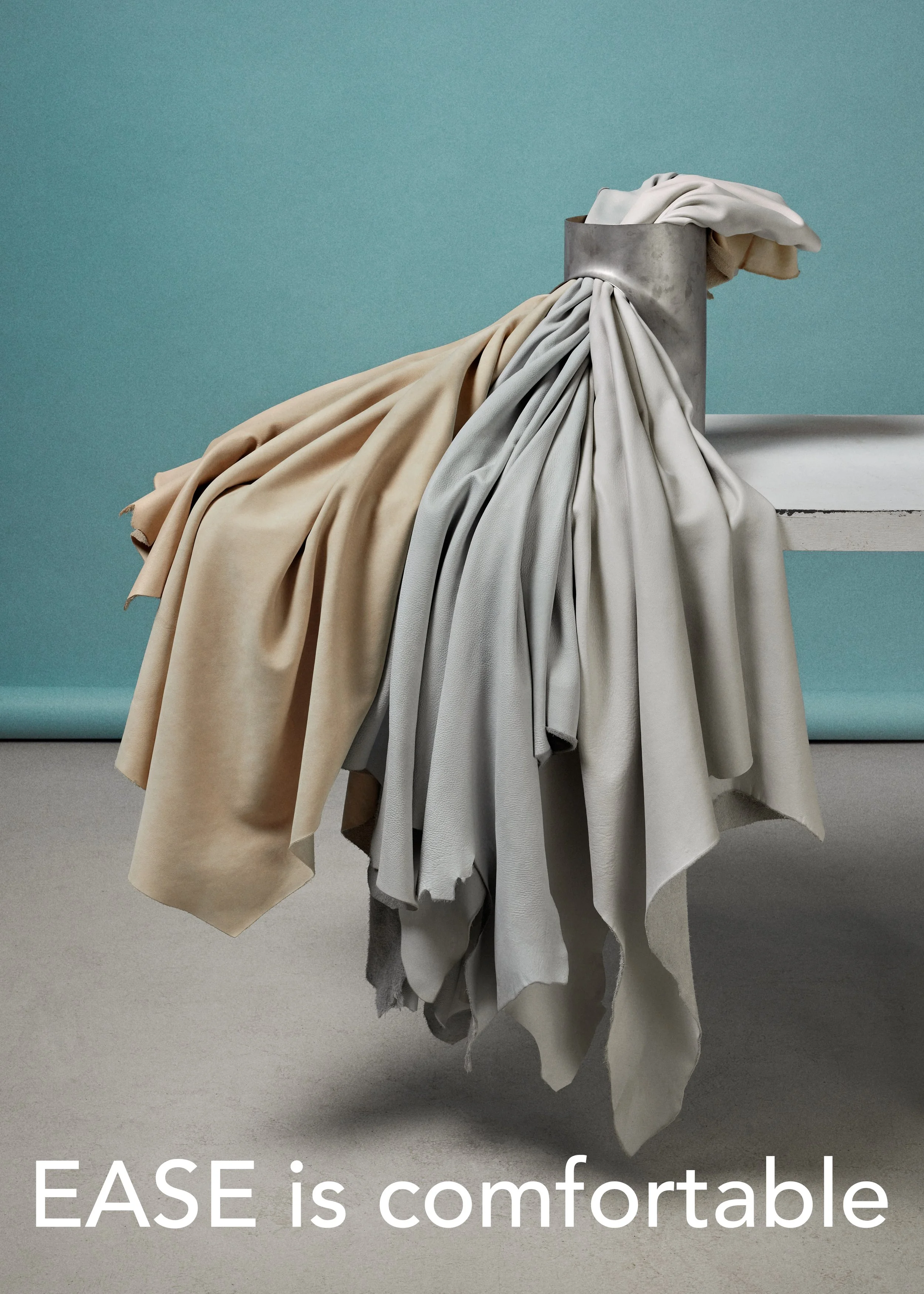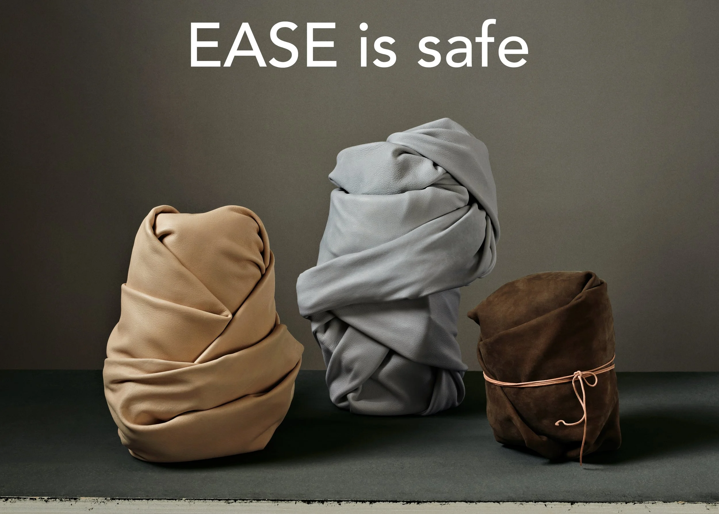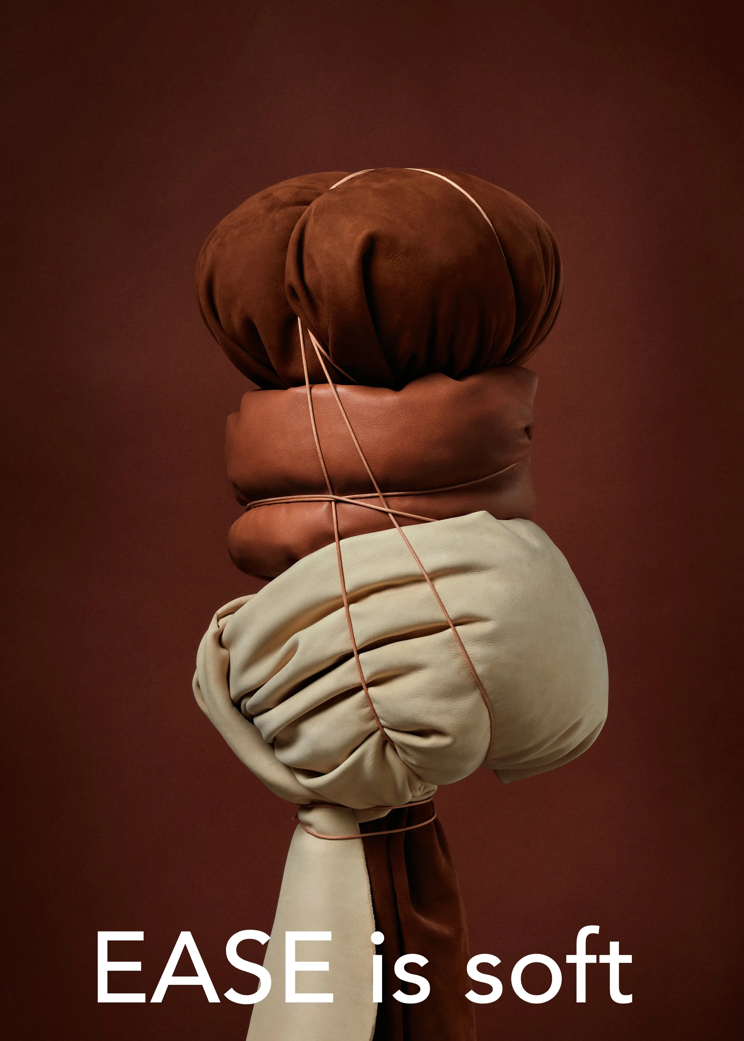 Visually, we aimed to represent these ideas through leather. For example, to communicate that EASE is cozy, we crafted a leather composition that radiates warmth and comfort, such as a soft leather sculpture designed to evoke a sense of relaxation and contentment. Through this visual translation, the collection embodies the essence of Hygge while highlighting the unique qualities of the leather..