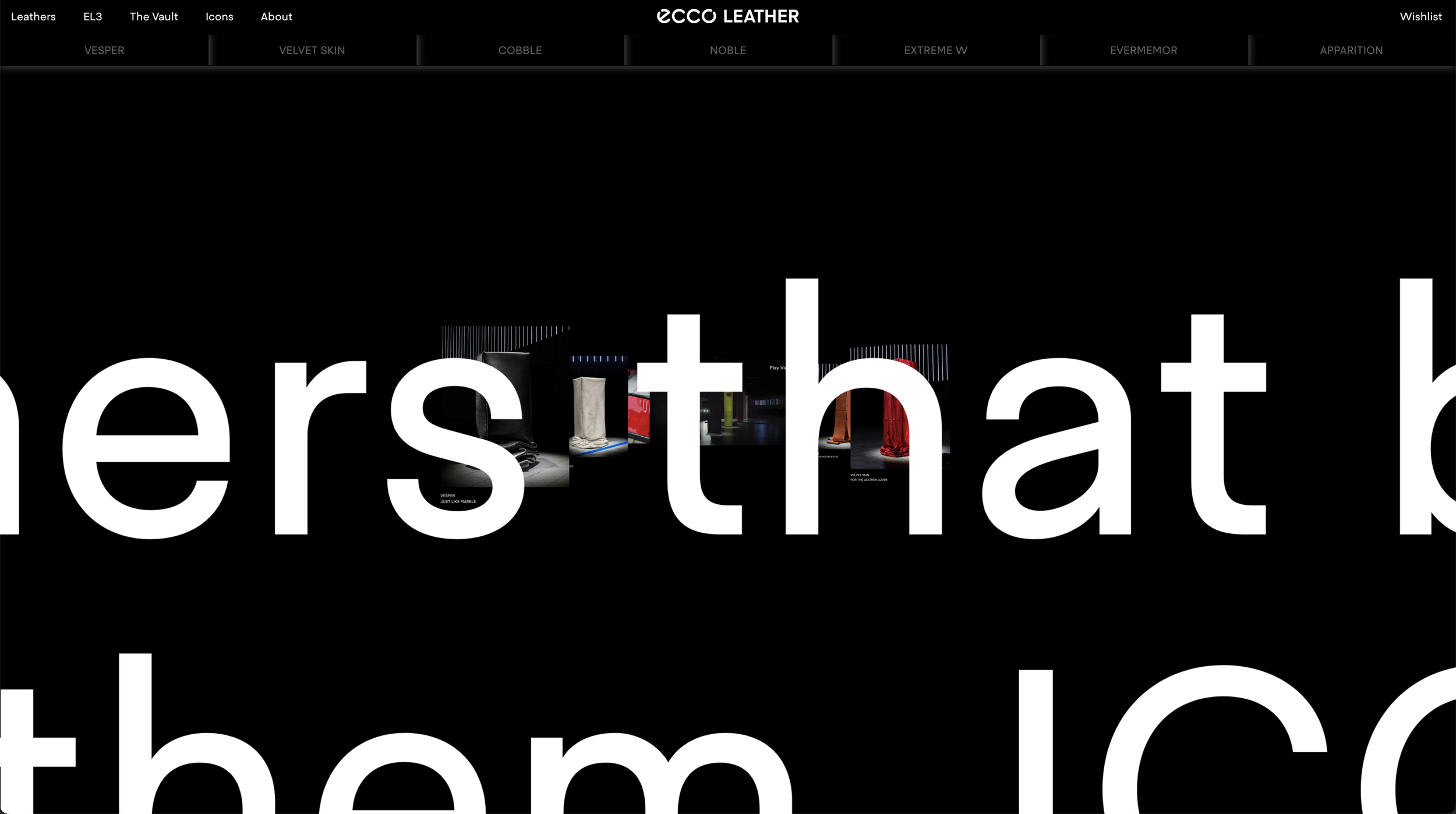 For B2B engagement, we developed tailored promotional materials, digital showcases, and personalized showroom experiences, allowing ECCO Leather to present their signature leathers in a distinctive and impactful way. Additionally, we designed a dedicated website to guide visitors through the ICONS narrative, delivering an immersive and engaging online journey.