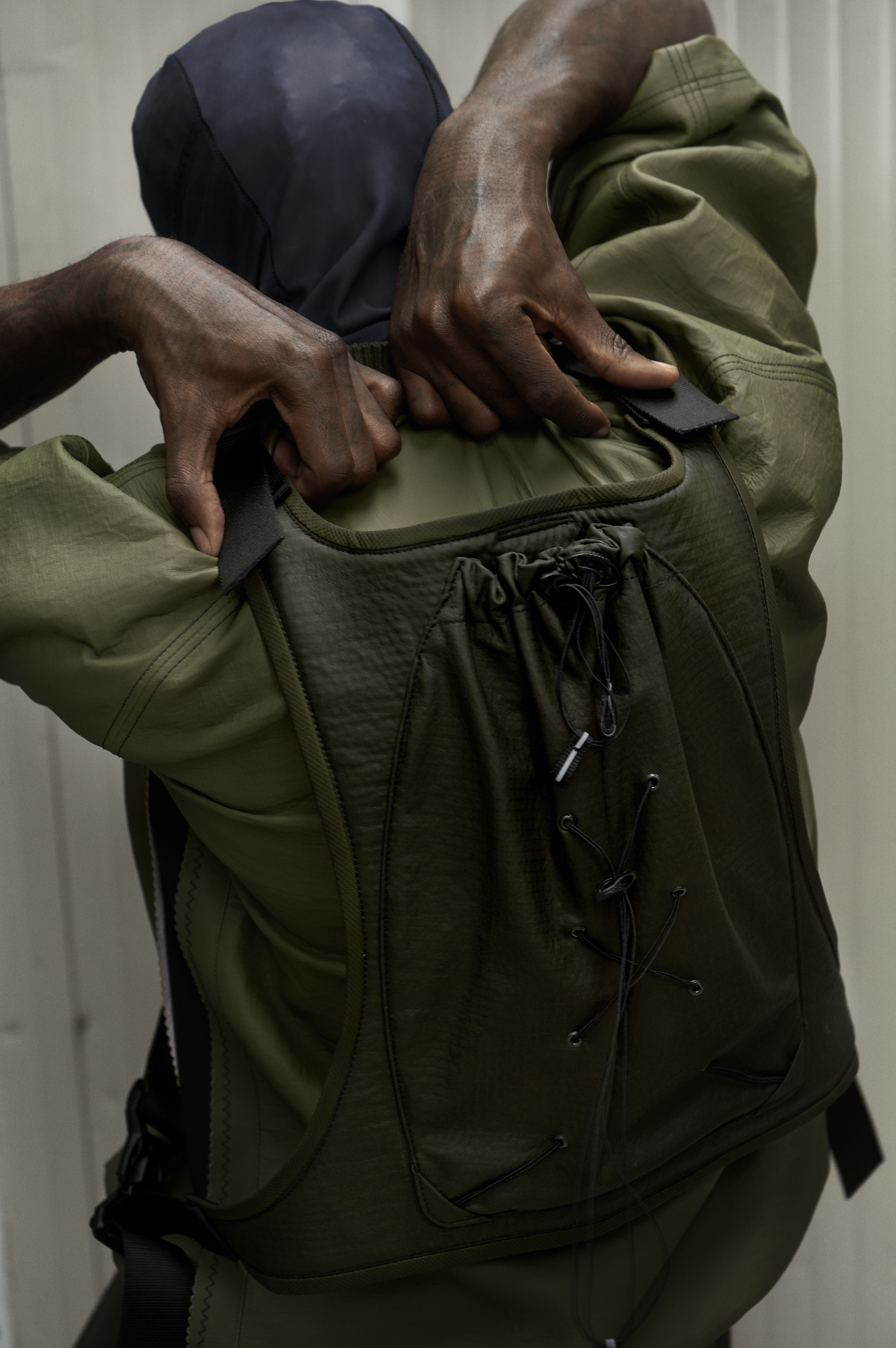 Drawing inspiration from the world of tech wear, this collection elevates leather properties to new heights. It celebrates movement and innovation, with this theme serving as a unifying thread throughout the project.